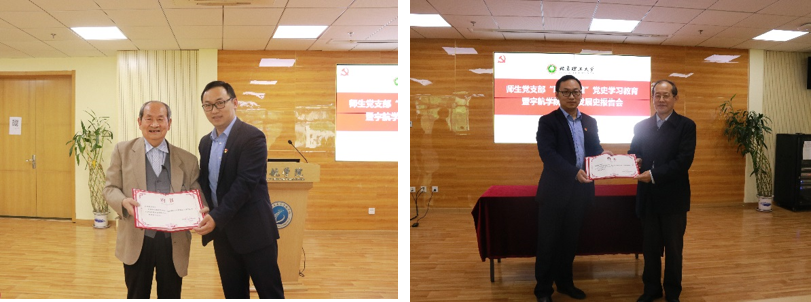 会上党委书记龙腾为教工党支部书记代表颁发了学习资料,希望各党支部通过师生支部共建等学习教育形式,继续开展好学科发展史学习,知校史、院史、学科发展史,传承红色基因,为建设中国特色世界一流大学而贡献力量。