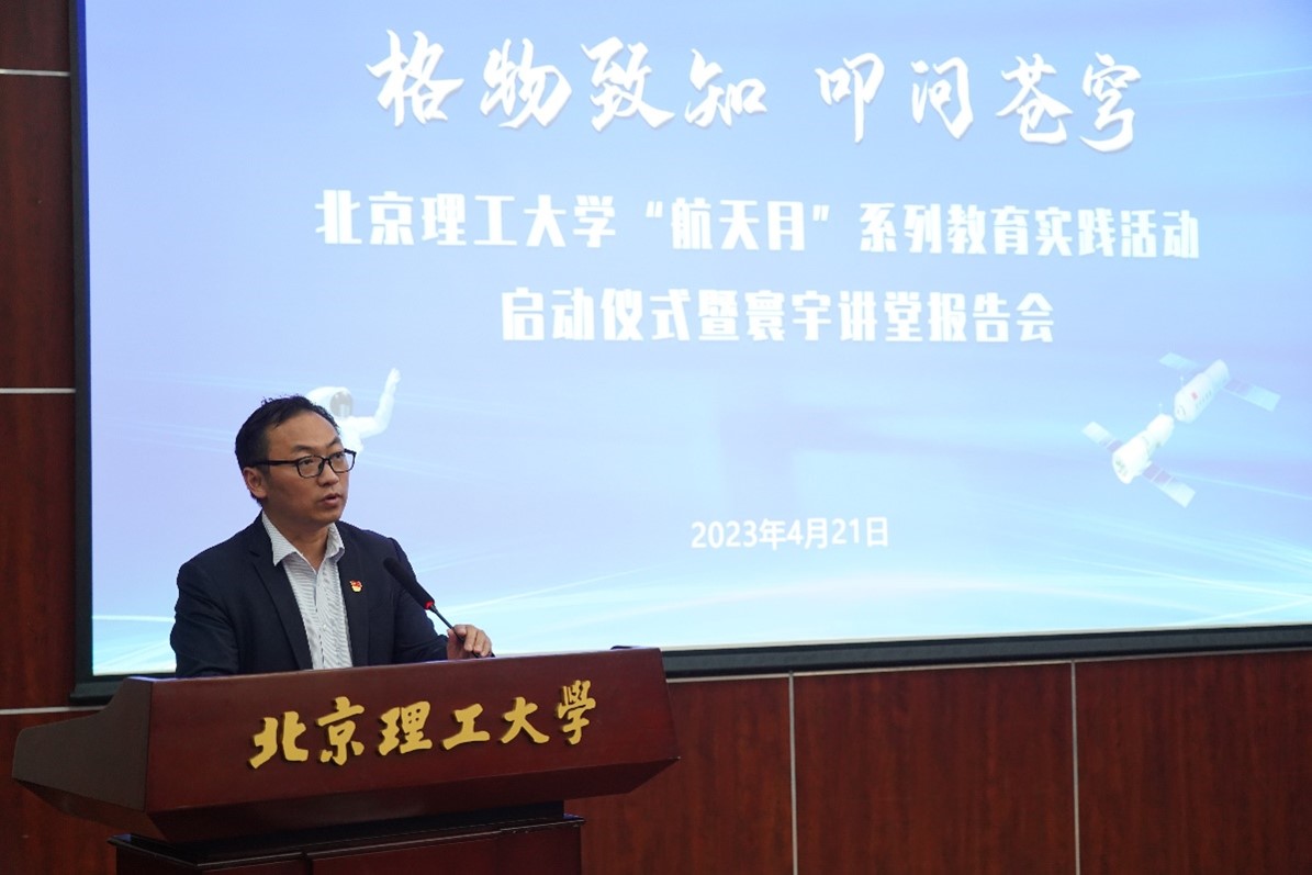 “航天月”正式启动。他讲道,北理工的红色基因,激励着一代代北理工人建功立业,创造了科技史上一个又一个“第一”,一大批校友成长为为祖国航空航天事业做出贡献的优秀人才。他勉励新时代的北理工青年,要牢记习近平总书记的殷殷嘱托,锤炼本领、勇于创新、接续奋斗,投身航天事业,建设航天强国,用航天梦助力中国梦。