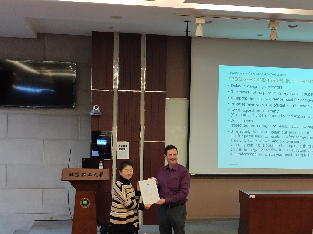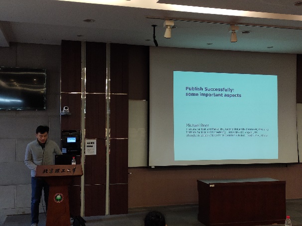 报告会上,Beer教授从选刊、论文撰写和论文修改等方面分别分享了他的方法和经验,涵盖了整个学术期刊的发表过程。Beer教授风趣幽默,从期刊审稿人以及读者的身份出发,换位思考,提出了具有很多有建设性的建议。整个讲座过程轻松活跃,Beer教授独到的见解和风趣的言语给在座的师生留下了很深刻的印象。
